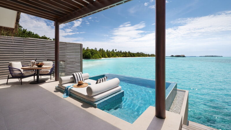 Alle Villen am Strand verstecken sich in der üppigen Natur zwischen hohen Kokosnuss-Palmen, die dem Inselparadies auch seinen Namen geben – „Vakkaru” heißt übersetzt Kokosnuss-Holz. Direkt im Wasser finden sich die „Over Water Family Pool Villas” mit einem ebenfalls 24 Quadratmeter großen Infinity Pool.