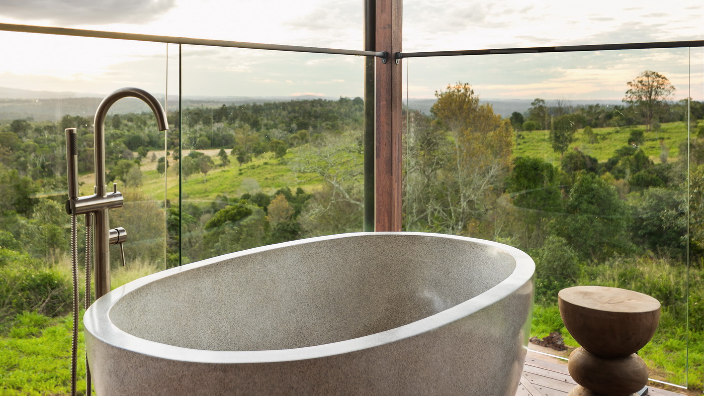 Auch in Queensland Country – etwa zweieinhalb Stunden Fahrt nordwestlich von Brisbane – wartet am Fuße der Bunya Mountains ein neues Refugium, das fernab von Alltag und Stress liegt. The Firebreak mit seinen privaten Ferienhäuschen liegt inmitten eines abgelegenen, familiengeführten Hofes, der sich der regenerativen Landwirtschaft verschrieben hat. Hier lässt es sich buchstäblich ausschalten – zum Beispiel in der Outdoor-Badewanne auf der eigenen Terrasse.