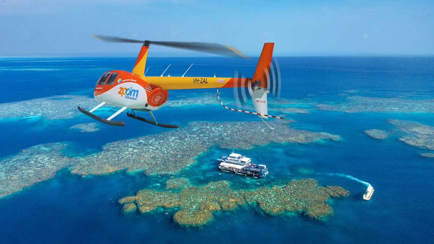 Für Eilige, die sich ein tiefgehendes Erlebnis des Great Barrier Reef wünschen, hat Sunlover Reef Cruises gemeinsam mit Zoom Helicopters die „Reef Zoom Half Day Tour” ins Leben gerufen. Ab Cairns geht es per Boot oder Helikopter zum Moore Reef Pontoon. Entweder auf dem Hin- oder Rückweg dürfen die Gäste der Tour dabei das himmelblau-türkisfarbene Patchwork des Great Barrier Riff von oben auf sich wirken lassen.