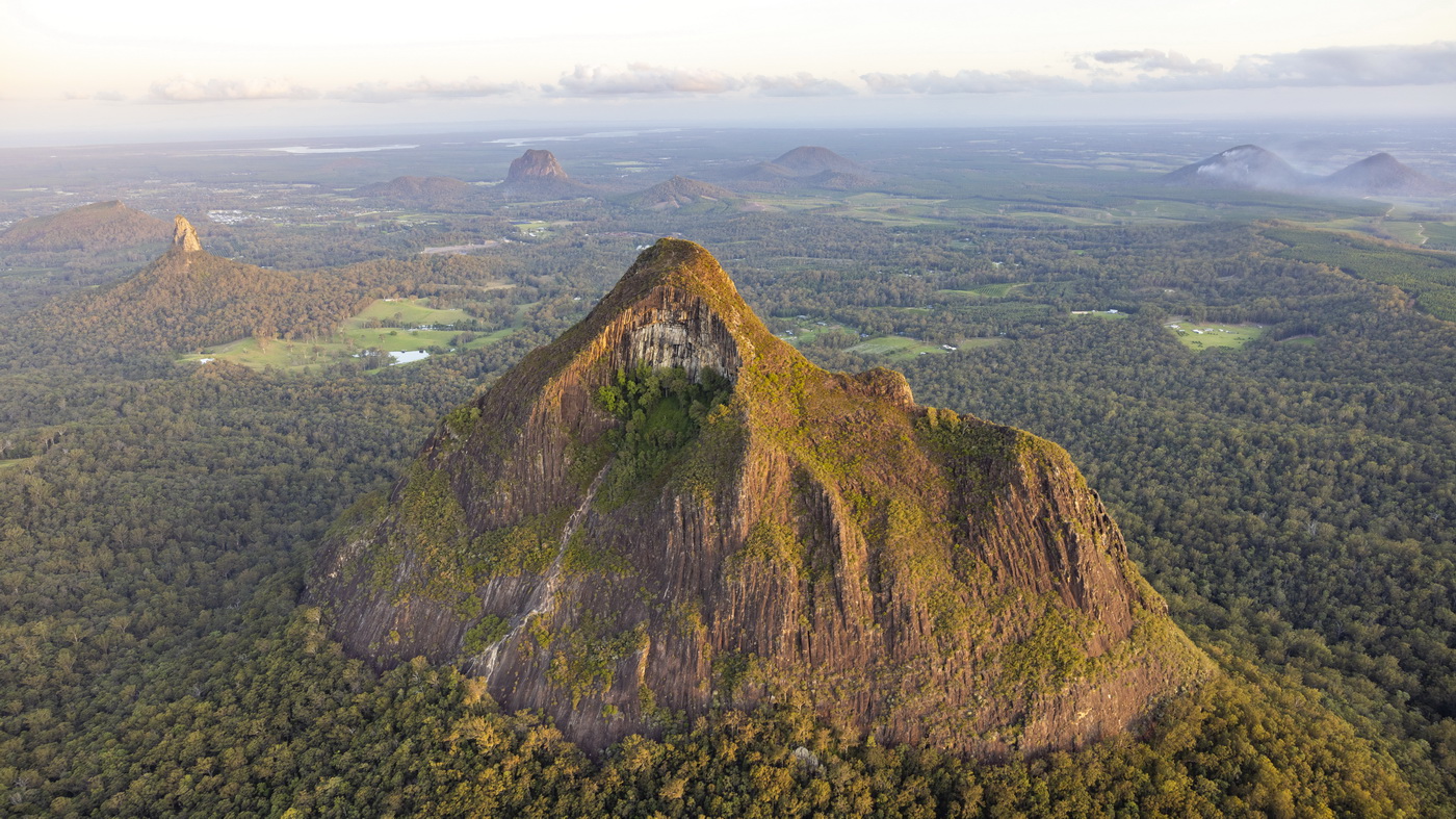 Wer sich darüber hinaus auch noch einen Überblick über die umliegende Landschaft aus der Vogelperspektive verschaffen will, fliegt mit Oceanview Helicopters über die Glass House Mountains zu einem “Picnic on a Peak” mit regionalen Spezialitäten, Craft Beer und ausgesuchten Weinen – Gourmet-Tourismus in luftigen Höhen.