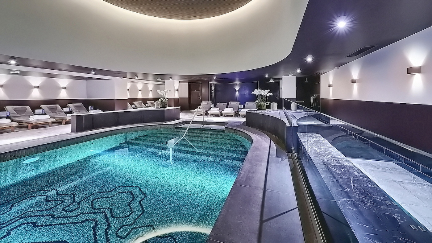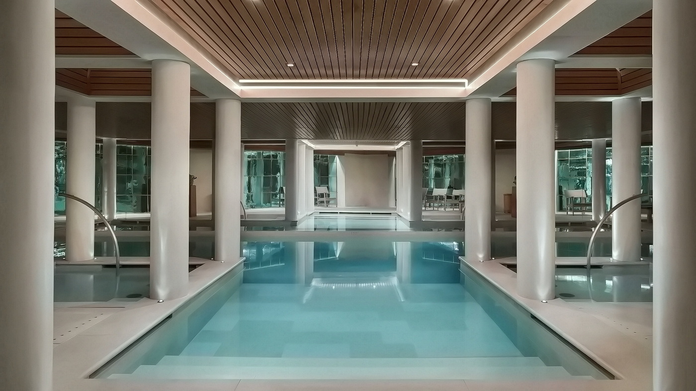 Der „Cavalieri Grand Spa Club” im luxuriösen Rome Cavalieri, a Waldorf Astoria Hotel liegt auf dem höchsten Hügel von Rom und bietet einen Panoramablick auf die Ewige Stadt und den Petersdom – eingebettet in einen üppigen, 15 Hektar großen mediterranen Park. Neben einem prächtigen, amethystfarbenen Indoor-Pool, der von Marmor und römisch inspirierten Mosaiken umrahmt wird, verfügt die opulente Oase auch über heiße und kalte Tauchbecken mit Hydromassagen, separate Saunen für Männer und Frauen und eine „Relaxation Lounge”. Ein Refugium, das Welten von der Hektik der Stadt entfernt ist.