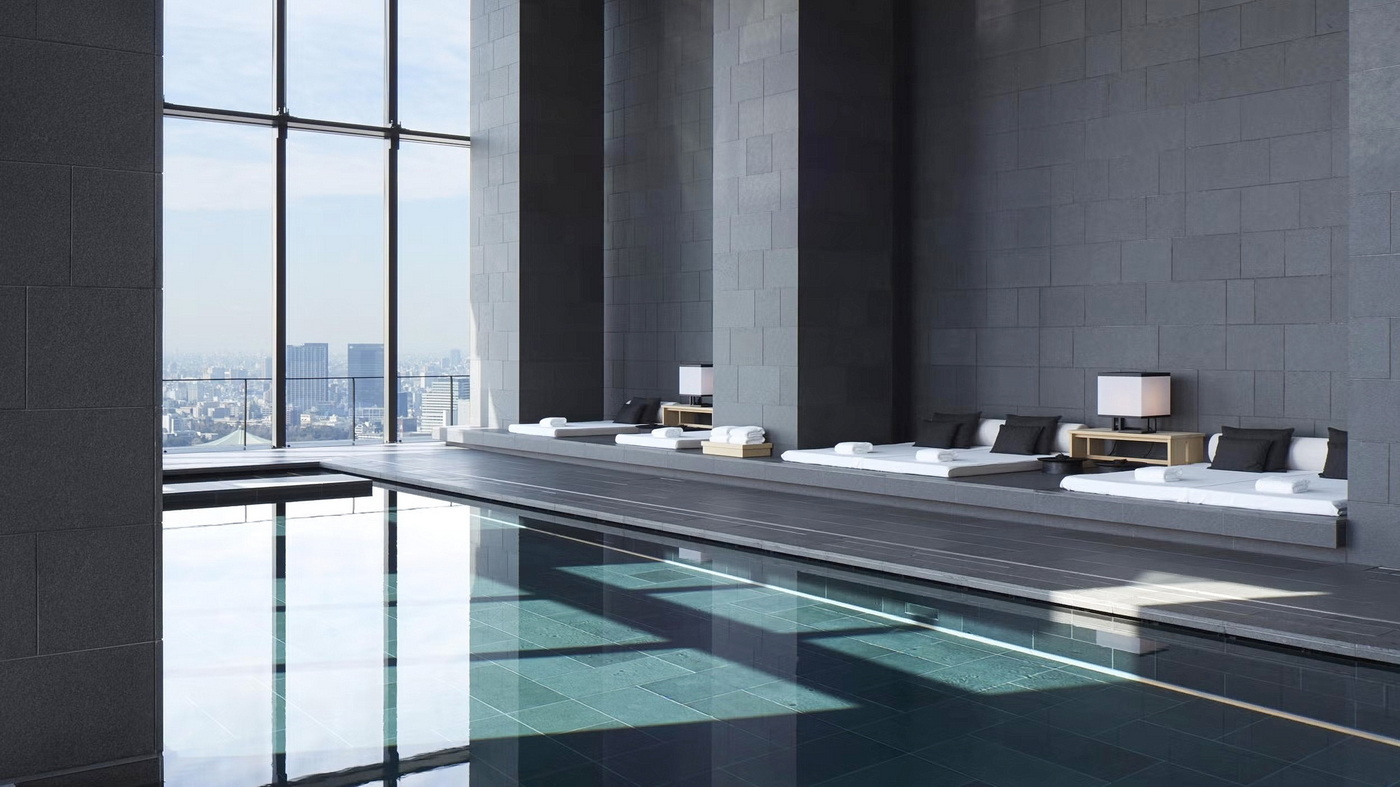 Vom spektakulären, 30 Meter langen Indoor-Pool auf der obersten Etage des Aman Tokyo genießen die Gäste einen atemberaubenden Blick auf die Stadt. Das Luxushotel belegt die oberen Stockwerke des Otemachi Towers und verfügt über nur 84 Zimmer und Suiten. Ein weiteres Highlight neben dem 2.500 Quadratmeter großen Spa ist die dramatische, stolze 26 Meter hohe Lobby auf der 33. Etage.