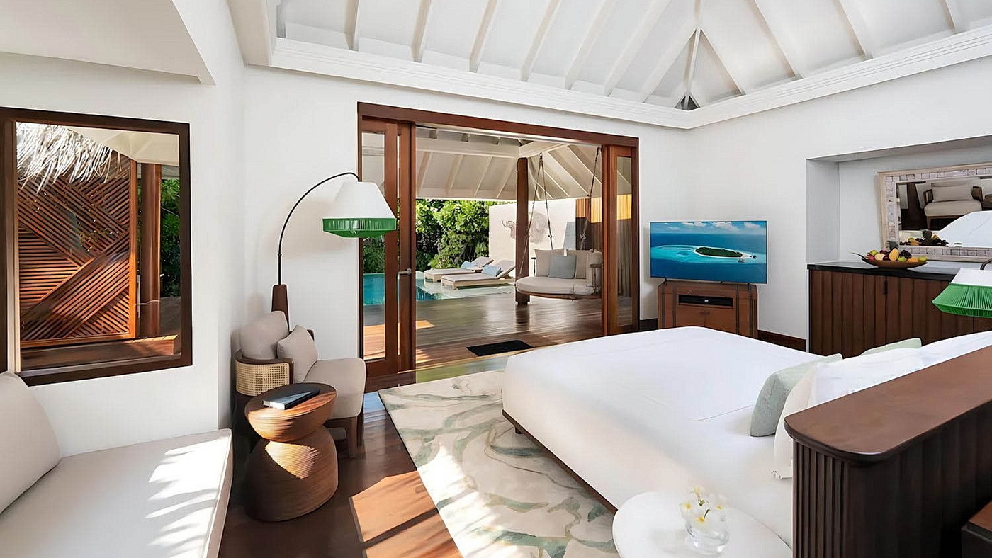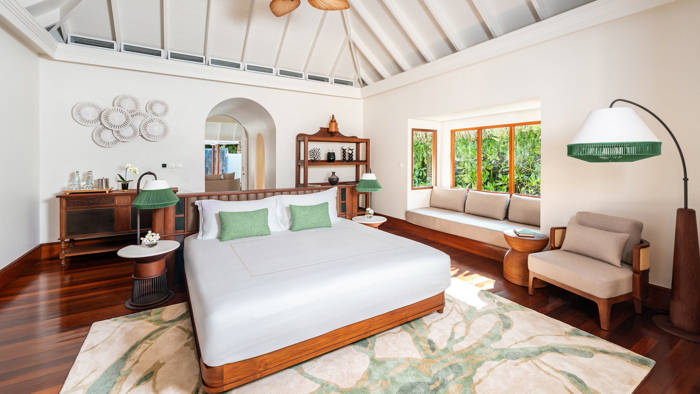 Eingebettet in üppiges Grün und nur wenige Schritte von der kristallklaren Lagune entfernt, bieten die Strandvillen nunmehr innen und außen eine kombinierte Wohnfläche von 258 Quadratmetern, während das neue Design maledivischen Charme mit moderner Eleganz verbindet – absolute Privatsphäre inklusive.