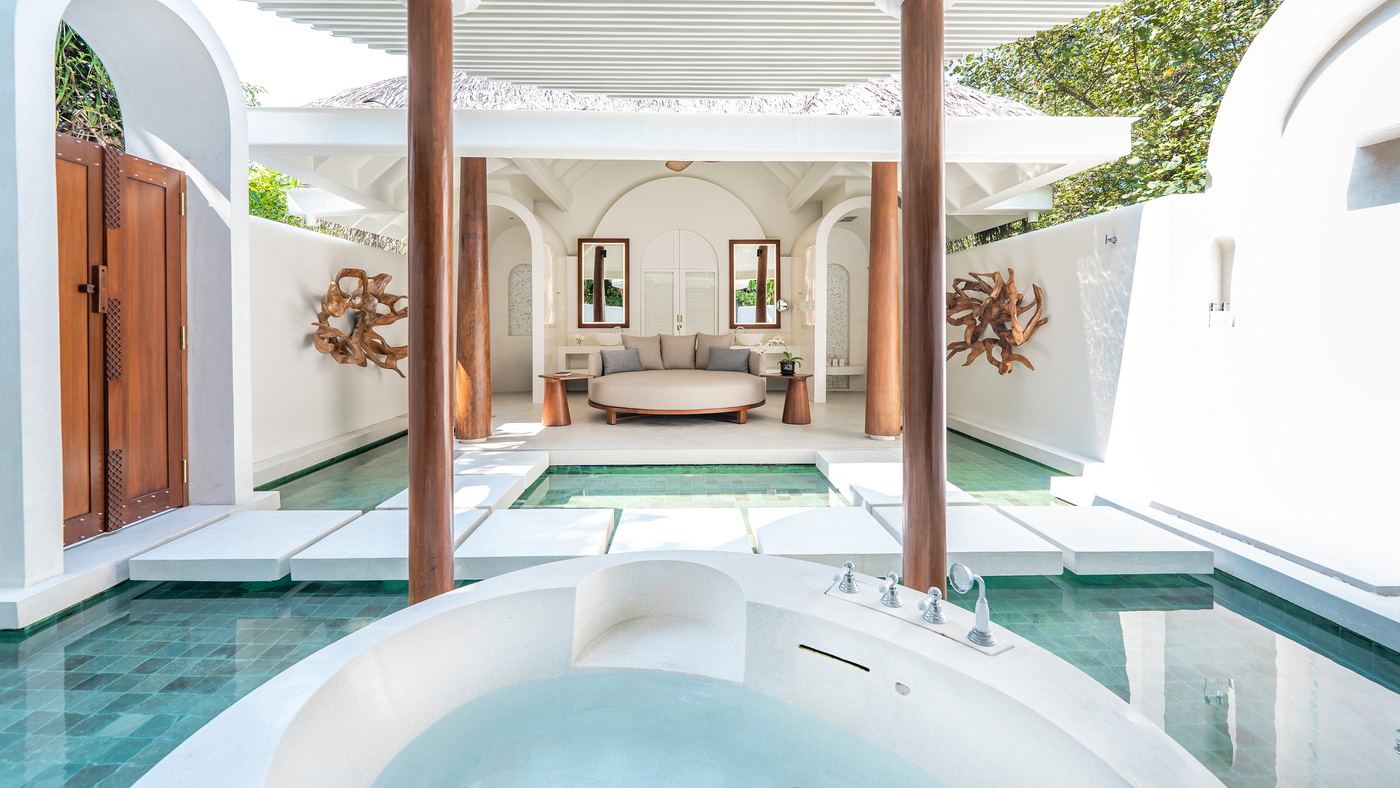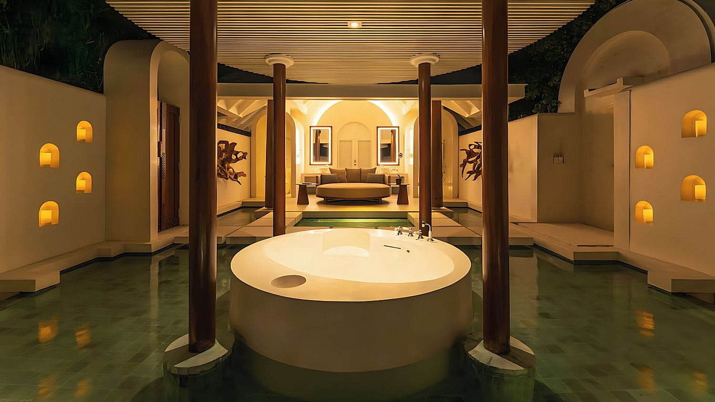 Große Glastüren lassen viel Tageslicht in die Villen, die mit handgefertigten Holzoberflächen und stilvollen Kunstwerken eine Atmosphäre kultivierter Ruhe schaffen. Eine vergrößerte Außen-Sala am privaten Pool lädt zum Entspannen ein – ob beim Sonnenuntergang oder bei einem Abendessen unter dem Sternenhimmel. Wahre Refugien sind die Badezimmer. In einem Gartenhof warten eine Regendusche, eine Badewanne unter freiem Himmel und eine geräumige Sofa-Lounge.