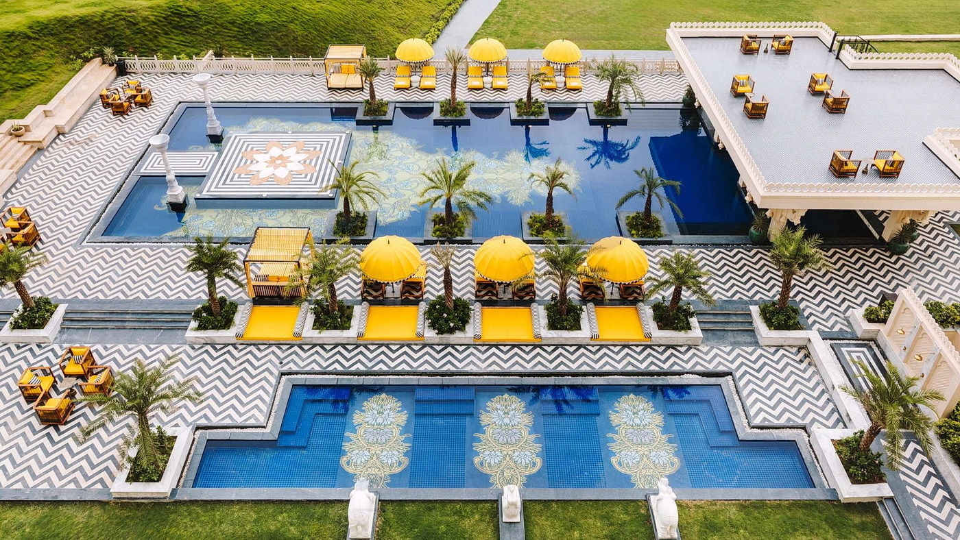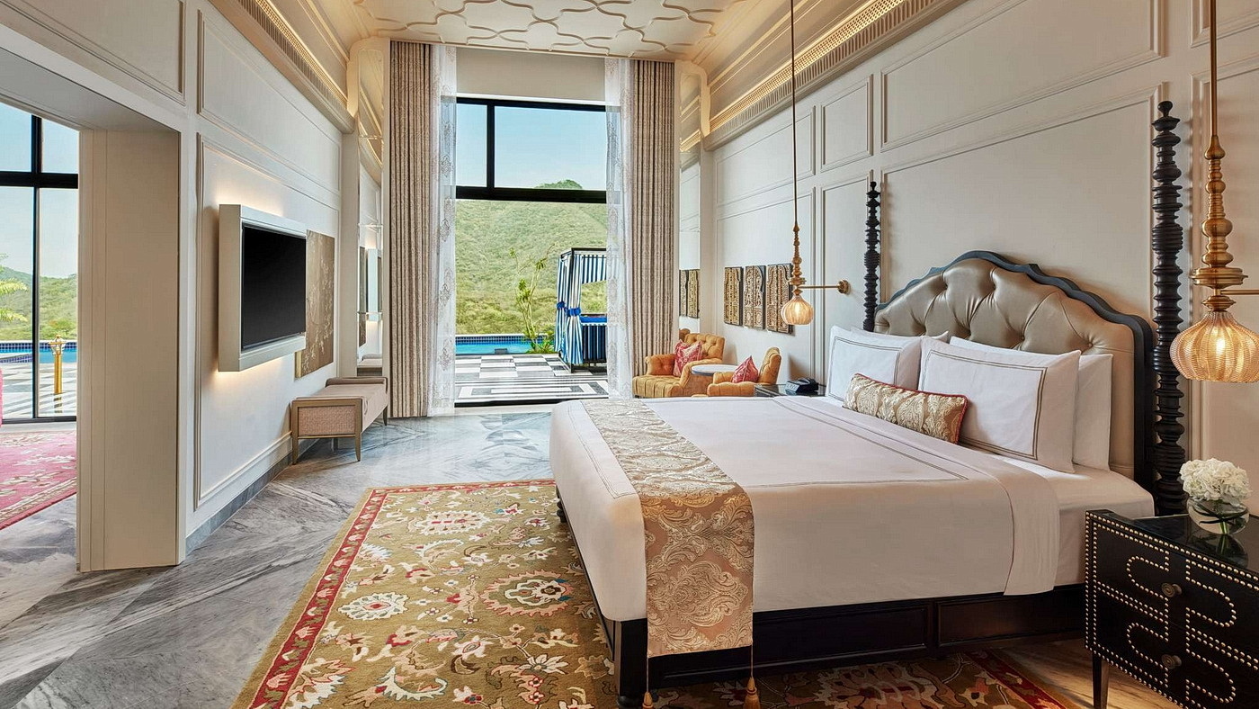 Ein Spa, ein Fitnesscenter, drei Pools und eine Sportarena mit Minigolf, Pickleball, Paddleball und Seilrutschen sind ebenfalls Teil des Fairmont Udaipur Palace. Das Stadtzentrum von Udaipur ist rund 15 Minuten mit dem Auto entfernt und der nächste Flughafen rund 45 Minuten. Die Raten für ein Signature-Zimmer mit Tauchbecken beginnen je nach Saison bei 540 bis 800 Euro pro Nacht inklusive Frühstück, Steuern und Gebühren.