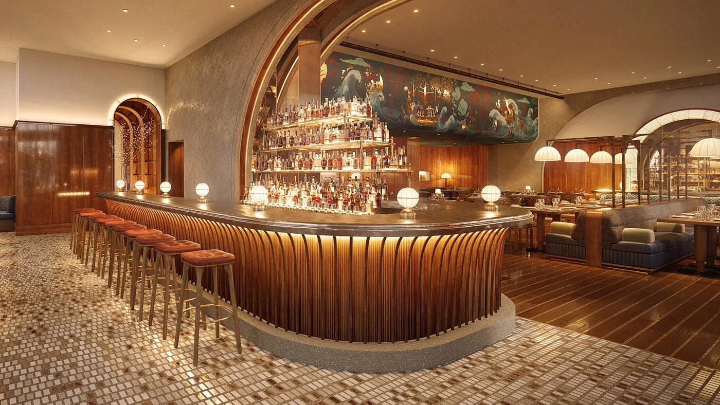 Geschwungene, mit Samt bezogene Bänke, von Blütenblättern inspirierte Kronleuchter und eine Theke mit echten, in Harz gegossenen Pflanzen erinnern an klassisches Art déco, während die projizierte Kino-Beleuchtung zwischen Tag und Nacht changiert. Live-Musik und DJ-Sets sind hier ebenso angesagt wie Pop-up Performances und Kunstaktionen. Im benachbarten „Living Room Café“ werden tagsüber Kaffee-Spezialitäten serviert, ehe sich der Raum abends in eine Cocktail-Bar verwandelt.