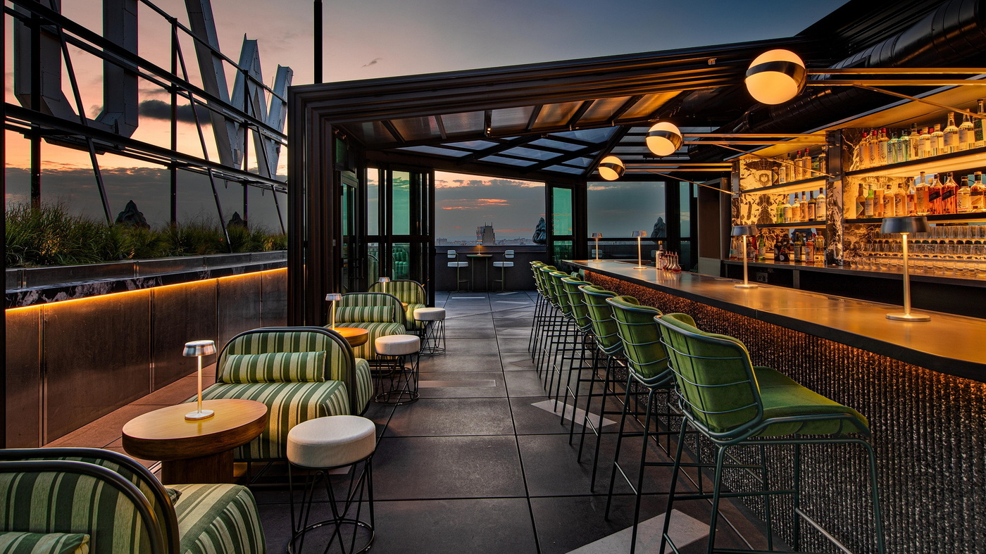 Die einzige Rooftop-Bar am Union Square befindet sich auf der 17. Etage – gut versteckt hinter dem bekannten Leuchtschild des W Hotels. Die Ästhetik des Innen- und Außenbereichs orientiert sich an legendären Institutionen des Nachtlebens – beispielsweise Andy Warhols Factory und Max’s Kansas City, die sich einst um die Ecke des Hotels befanden. Der Blick auf die Skyline und ein Hauch nostalgischen Glamours machen die Dachterrasse zum perfekten Ort für einen Drink zur „Goldenen Stunde“.