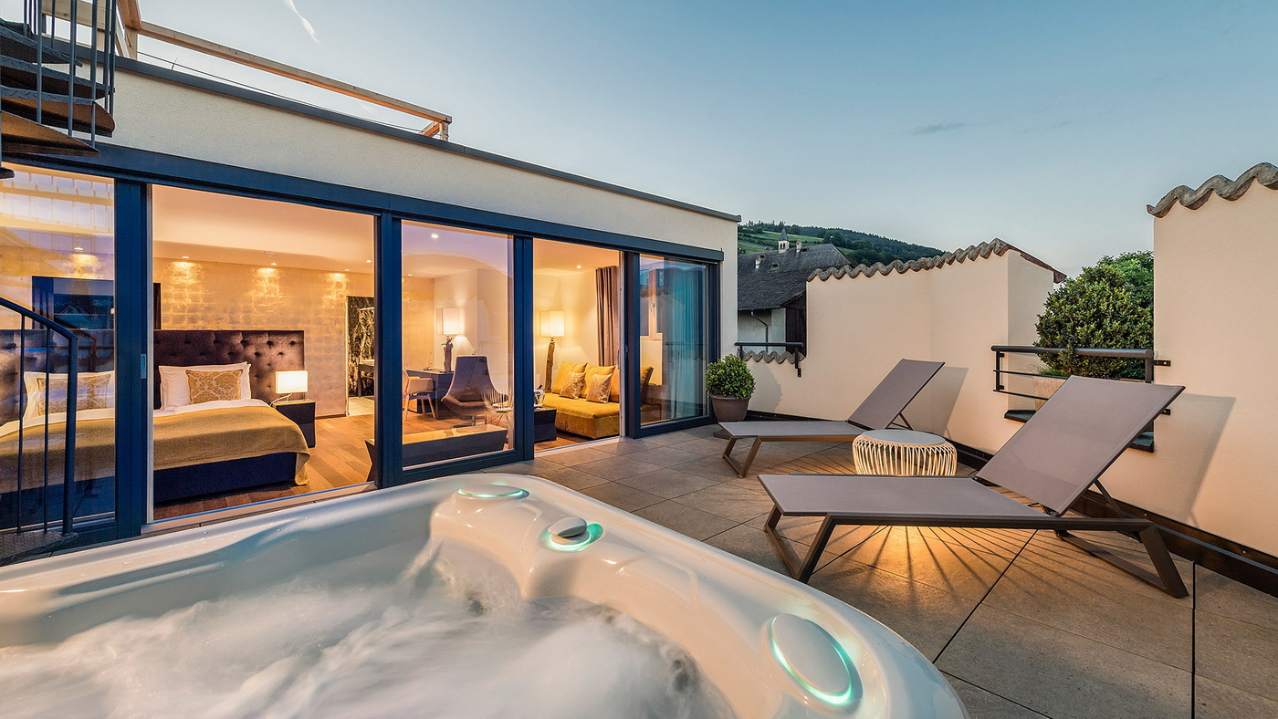 Das Aktiv- & Vitalhotel Taubers Unterwirt liegt direkt am Eisacktaler Kastanienweg und macht die Frucht zum Leitmotiv seines Hauses. Die Kastanie findet sich dabei nicht nur auf der Speisekarte, sondern auch in der Architektur und im Wellnessbereich.