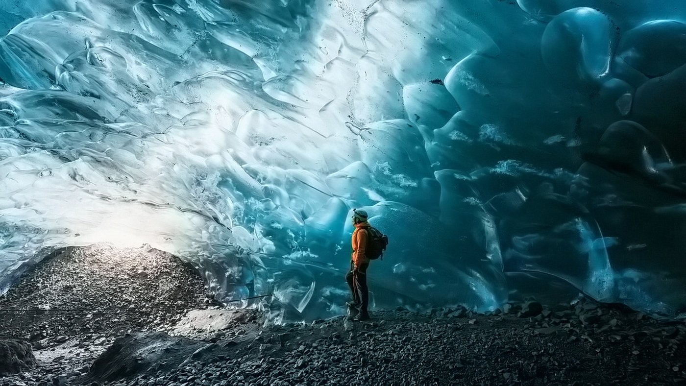 Island hat mehr zu bieten, als man auf den ersten Blick sieht. Wenn man eine Eishöhle betritt, wird die Welt still – nur unterbrochen vom Knirschen der Stiefel auf dem Eis. Blaues Licht scheint durch die Kristallwände, die manchmal mit schwarzer Asche durchzogen sind. Stille Zeugen vergangener Vulkanausbrüche.