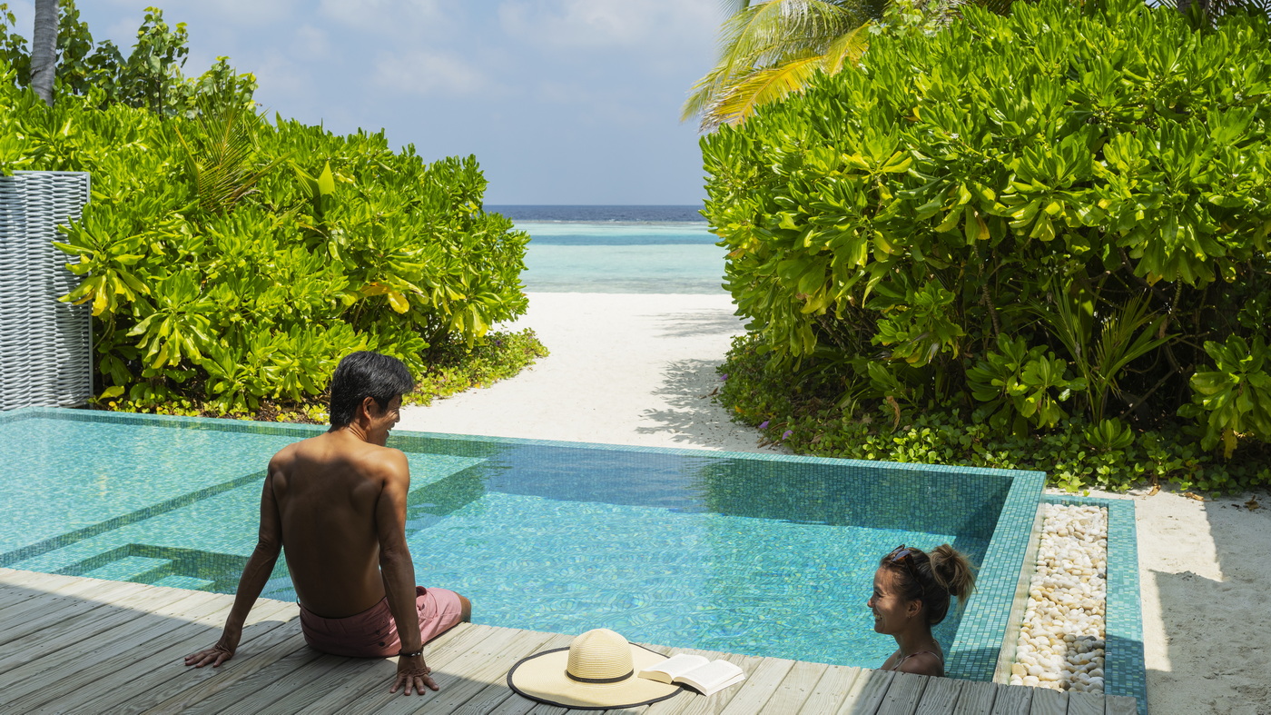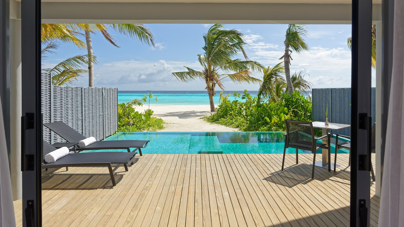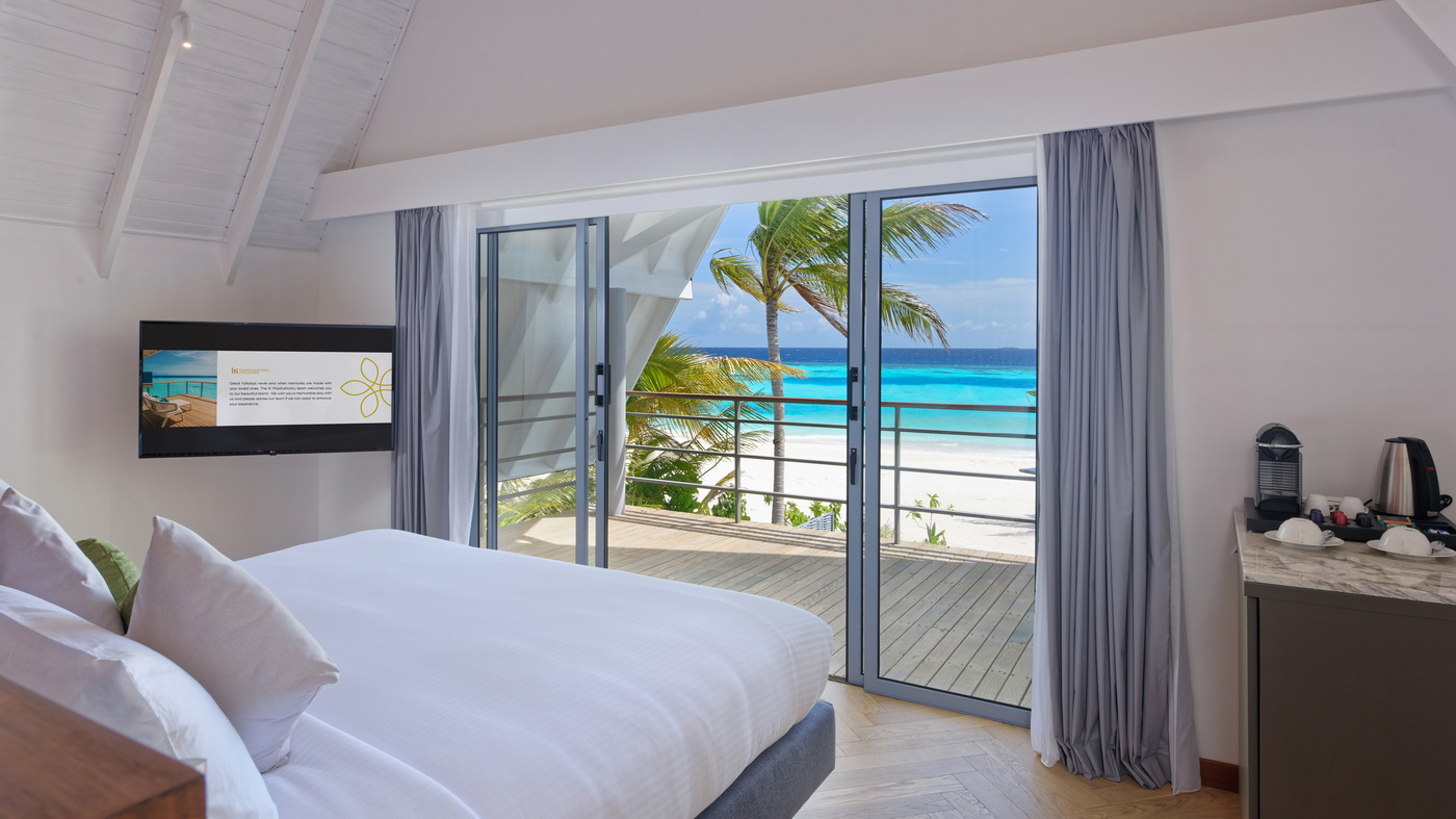Direkt am weißen Sandstrand gelegen, bieten die neuen Beach Family Villas mit zwei Schlafzimmern und bis zu 116 Quadratmetern Wohnfläche viel Platz für bis zu fünf Personen. Die lichtdurchfluteten Räume verbinden modernes Design mit natürlichen maledivischen Texturen.