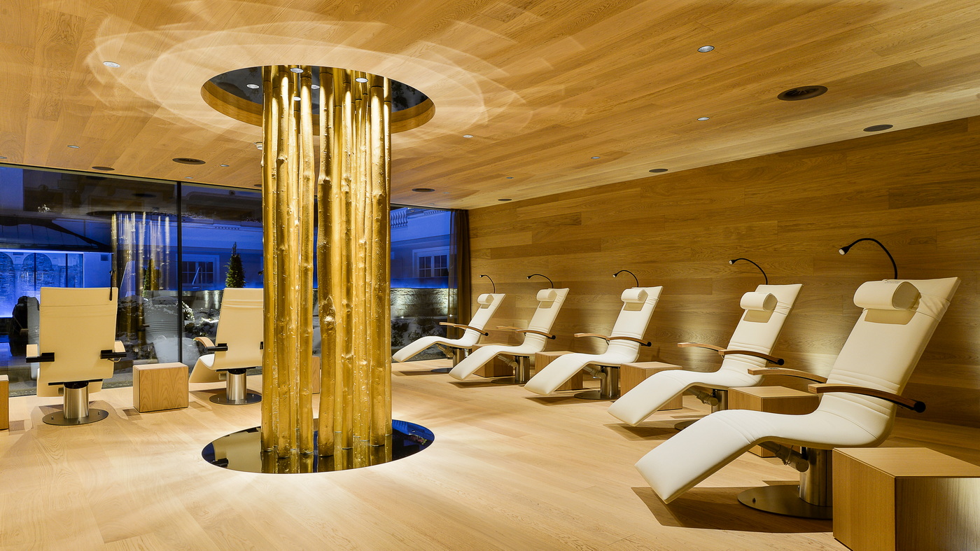 Schon der erste Anblick des neu gestalteten Wellnessbereiches im Fünf Sterne Superior Gourmet & Relax Resort Trofana Royal in Ischgl in Tirol lässt den Gast in die Erholung eintauchen. Pure Eleganz, warmes Holz und innovatives Design schaffen ein individuelles Gesundheitserlebnis in der royalen Wellness-Oase.