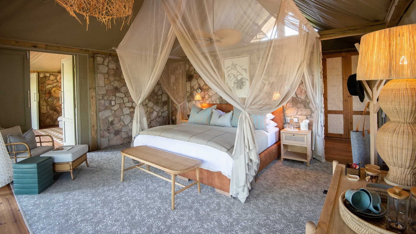 Das Design der Villen bewahrt den Stil des Mpala Jena Camps, das sich schon lange als gefragtes Safari-Ziel etabliert hat. Architektonisch lassen sich die Villen dabei vom weltbekannten Puglia-Stil inspirieren: Steile Reetdächer, sanfte Rundbögen und offene Räume, die im Sommer kühl und im Winter behaglich bleiben, prägen das Ambiente. Die Inneneinrichtung präsentiert sich hingegen rustikal und authentisch, bleibt aber dennoch schlicht und funktional.