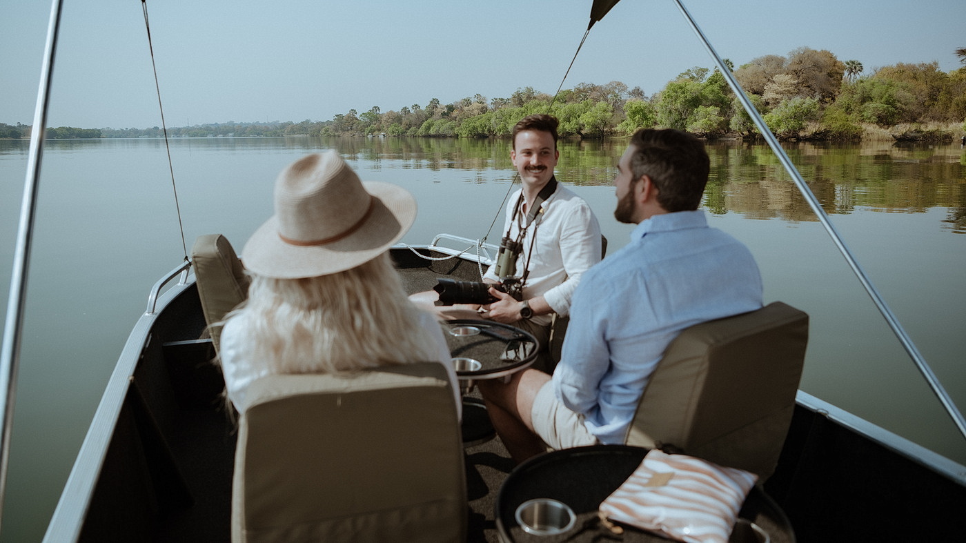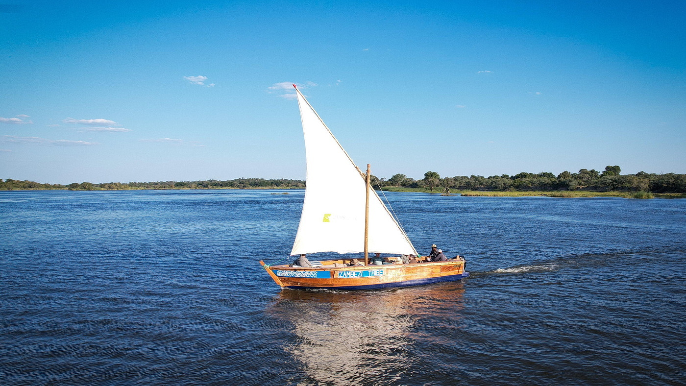 Private Pavillons am Ufer des Sambesi – leicht erhöht über dem weißen Sand – bieten ruhige Plätze zum Entspannen, Lesen und Beobachten des Flusses. Den Gästen der Mpala Jena Private Villas stehen zudem ein Safarifahrzeug und ein Motorboot ohne Aufpreis zur Verfügung, die individuelle Aktivitäten ermöglichen. Bei entsprechendem Wasserstand kann auch ein traditionelles Dhow-Boot aus Sansibar genutzt werden – ideal für Ausflüge zum Sonnenaufgang oder Sonnenuntergang.