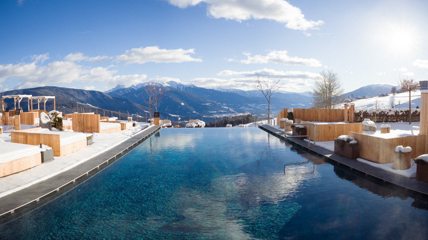 Zwischen sonnigen Pisten, urigen Almhütten mit den besten Südtiroler Schmankerln und dem beeindruckenden Dolomiten-Panorama wird Skifahren zum Genuss – und das kostenfreie Skidepot für die Hotelgäste an der Talstation macht es zusätzlich auch besonders komfortabel. Abseits der Hänge lockt die Rodenecker-Lüsner Alm mit Schneeschuhwanderungen, während daneben Langlaufloipen, Rodelausflüge und winterliches Lama-Trekking warten. Preis in der Wintersaison: ab 175 Euro pro Person und Nacht inklusive Dreiviertel-Verwöhnpension.