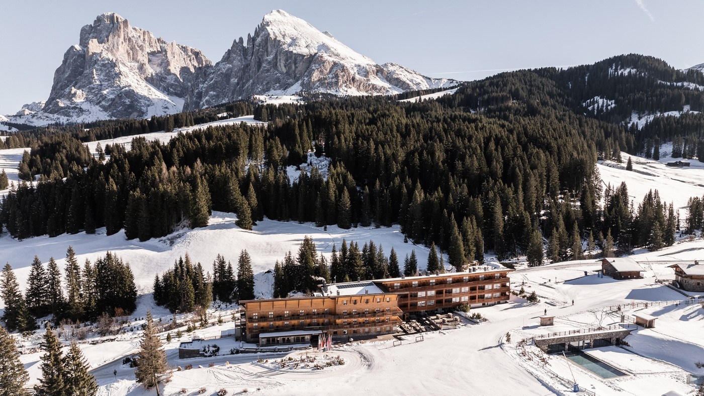 Zum Komfort gehören ein hauseigener Skiraum mit Schuhwärmern und eine Skischule direkt im Hotel. Die Seiser Alm – verbunden mit Gröden – bildet mit 181 Pistenkilometern und 79 Bergbahnen das größte Skigebiet der Dolomiten. Rodel-Fans freuen sich über die drei Kilometer lange Zallinger-Piste und der Hans-und-Paula-Steger-Weg begeistert als einer von unzähligen Winterwanderwegen, die direkt am Hotel starten – stets begleitet vom beeindruckenden Blick auf die Dolomiten. Preis in der Wintersaison: ab 215 Euro pro Person und Nacht inklusive Halbpension.
