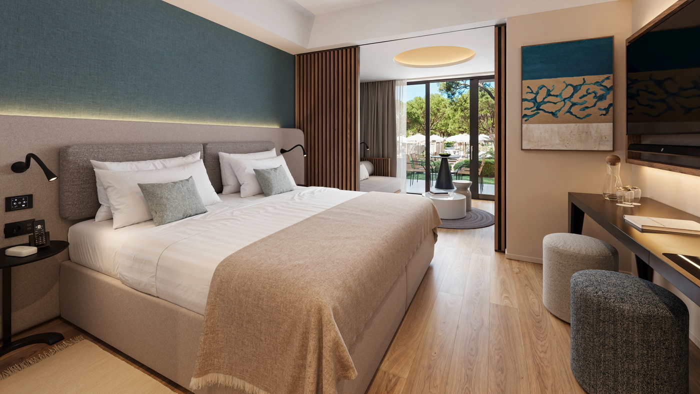 Das Ensemble aus drei verschiedenen Hotels umfasst insgesamt 514 Zimmer und Suiten für unterschiedliche Zielgruppen. Im Pical Hotel – als stilvoller Rückzugsort am Meer mit hochwertiger Kulinarik und spektakulärem Blick auf die Adria konzipiert – warten 191 Zimmer in acht Kategorien, zu denen auch V‑Level-Suiten mit zusätzlichen Annehmlichkeiten gehören.