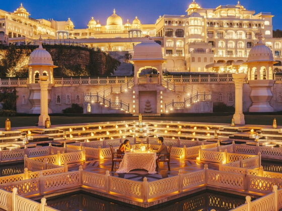 Auch die 150 Zimmer und Suiten sind eine Hommage an die reiche Kultur der Region: Aufwendige Tikri-Glasarbeiten, filigrane Holzarbeiten, Blattgold und edle Textilien in dezenten Naturtönen schaffen luxuriöse Rückzugsorte. Die geräumigen Suiten mit einer Größe ab 65 Quadratmetern sind zudem mit gemütlichen Sitzmöglichkeiten direkt am Fenster, privaten Terrassen und einem Jacuzzi mit Panoramablick ausgestattet.