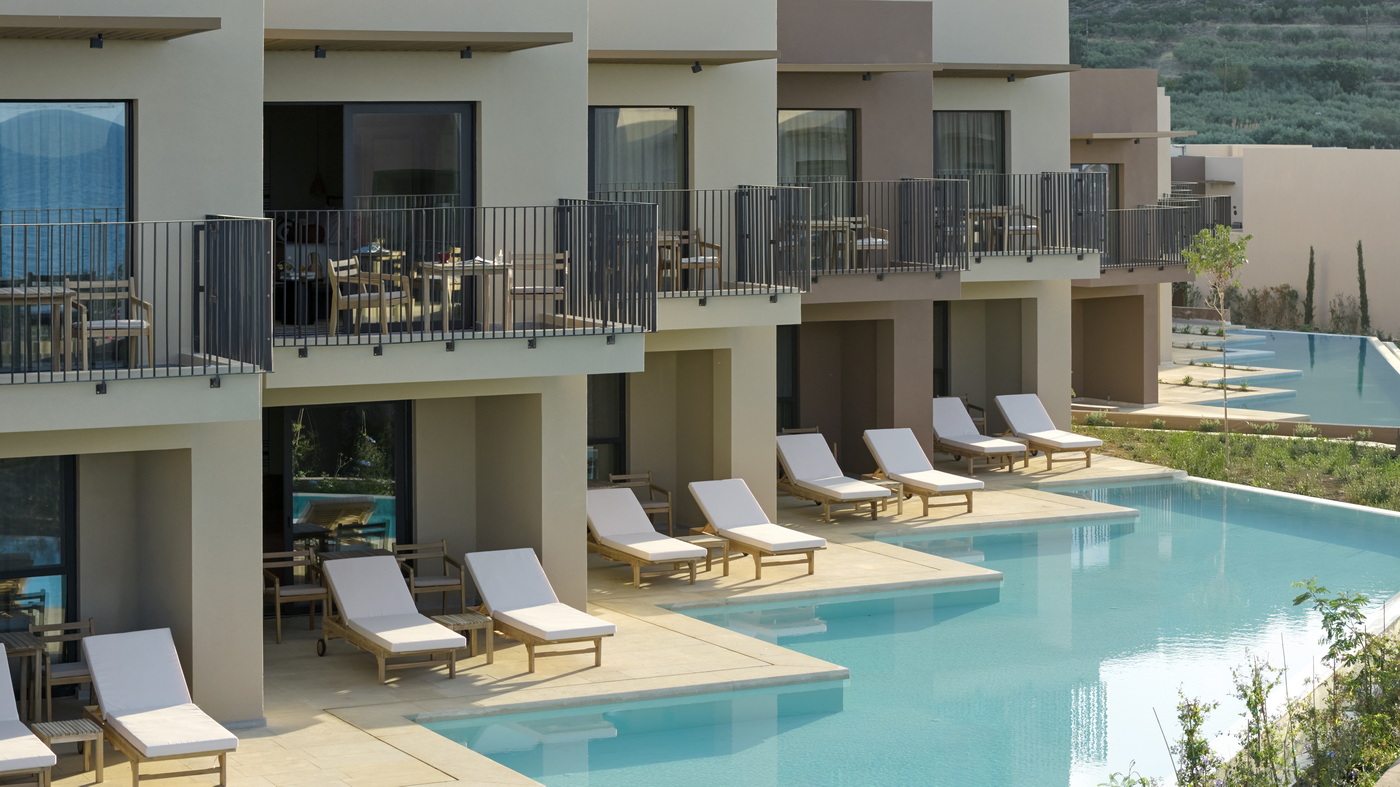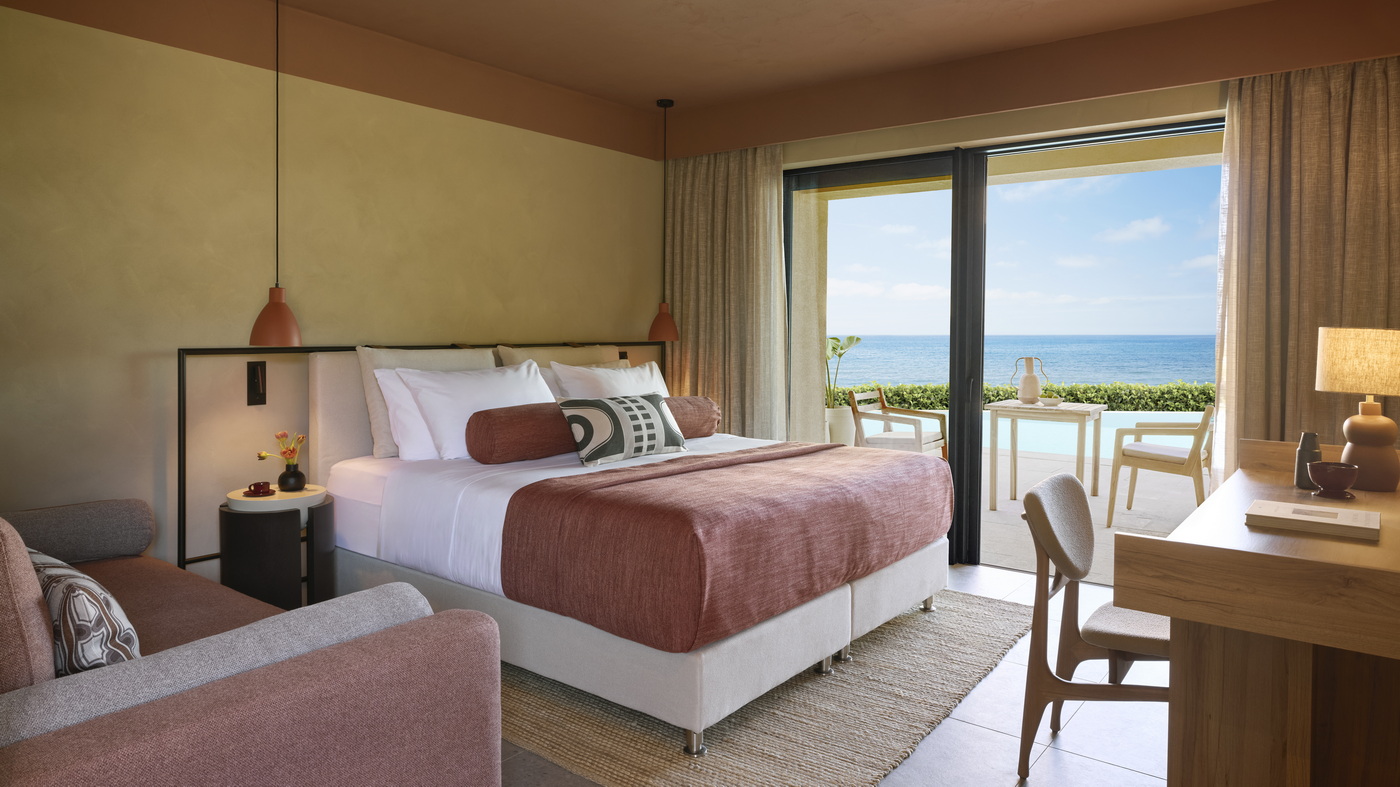 Die facettenreiche Landschaft bietet Erkundungspotenzial für Aktive und Familien. Zugleich überzeugt das Ella Rocrita mit einem stimmigen Interior- und Architekturkonzept, das sich in seiner Farbgebung aus erdigen Tönen und Fresken-Motiven an die minoische Kultur anlehnt.