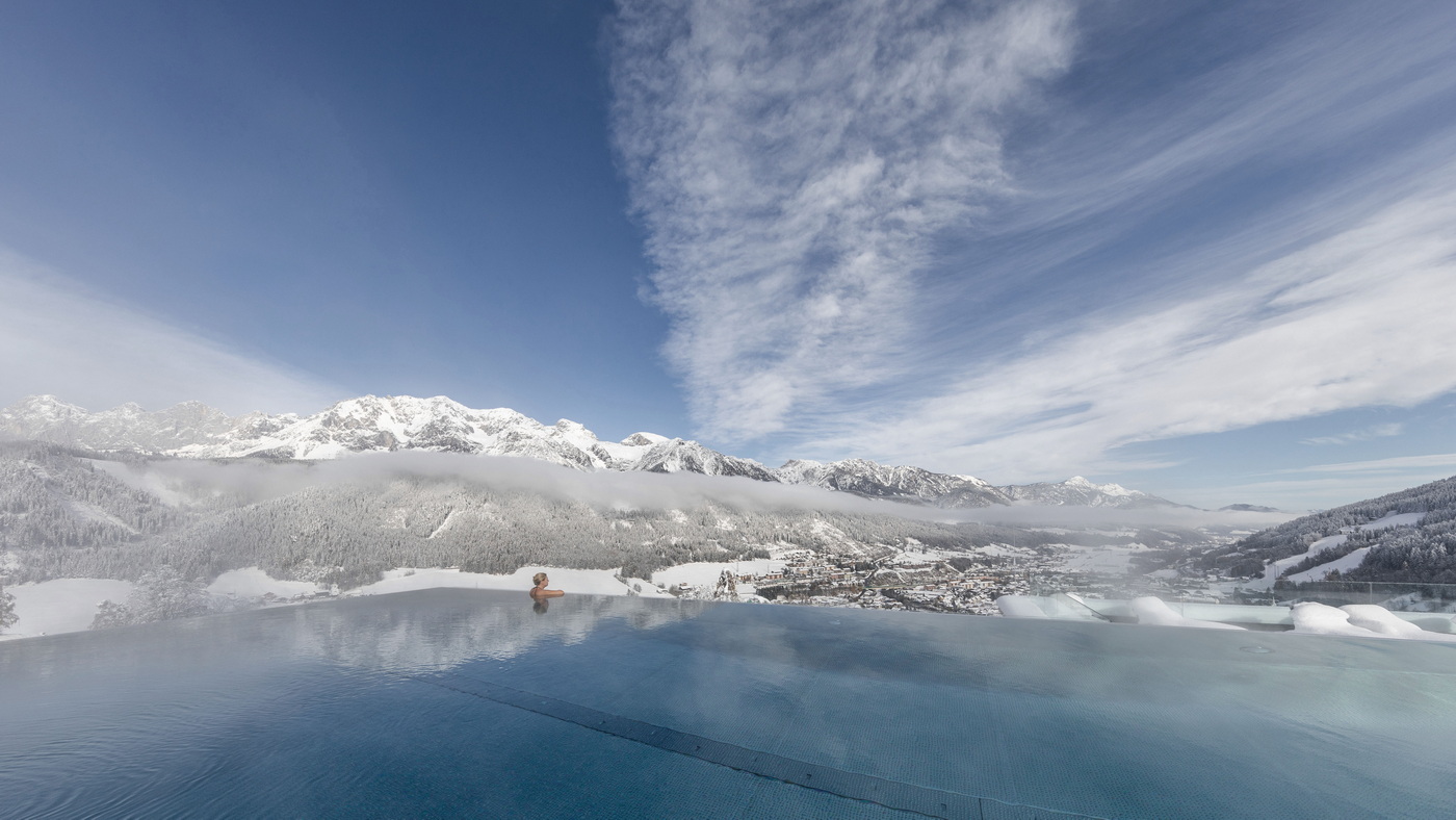 Ski-in-Ski-out und Wellness – diese Kombination macht das Hotel Schütterhof in Schladming in der Steiermark im Winter so besonders. Im Sommer sind es Wandern und Radfahren ab der Haustür am Fuße des Hochwurzen. Der Wellnessbereich gliedert sich in ein Family Spa und ein Spa für Gäste ab 16 Jahren. Dieses bietet mehrere Saunen, ein Dampfbad, ein Massage- und BeautyLand sowie einen 25-Meter-Infinitypool mit Blick auf den 3.000 Meter hohen Dachstein. Als traumhaft bezeichnen viele Gäste nicht nur die kuscheligen Bademäntel und flauschigen Handtücher, sondern auch die 3/4‑Genusspension und die Kombi aus Wellness und Skifahren.