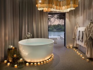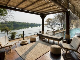 Die großen Badezimmer mit Outdoor-Duschen laden zum Wohlfühlen ein, ein weitläufiger Außenbereich mit Sitzgelegenheiten und Daybeds und nicht zuletzt die kleine Bar in jeder Suite sorgen für entspannte Stunden. Jede Suite verfügt auch über einen eigenen Pool mit Blick auf den Sambesi. Bei einem erfrischenden Bad lassen sich so nicht nur Affen, sondern auch Buschböcke, Flusspferde und bisweilen sogar Elefanten beobachten, die entlang des Flussufers ihrer Wege gehen.