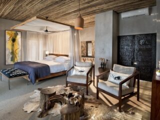 Die neue Designoase von andBeyond besteht aus zwei Camps mit jeweils neun Suiten. Zudem steht mit dem Matetsi River House eine Villa mit vier Schlafzimmern für größere Gruppen zur Verfügung. Werke lokaler Künstler schmücken die Suiten, deren Design vom Fischfang und dem reichhaltigen Kupfer-Vorkommen der Gegend inspiriert wurden. Beides hat die Kultur am Sambesi nachhaltig geprägt.